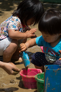 | なかなかどろんこのスジがよろしい。 つぎは7がつに「みずあそび」あります。 さんかしたいかたはどうぞぉー。 |